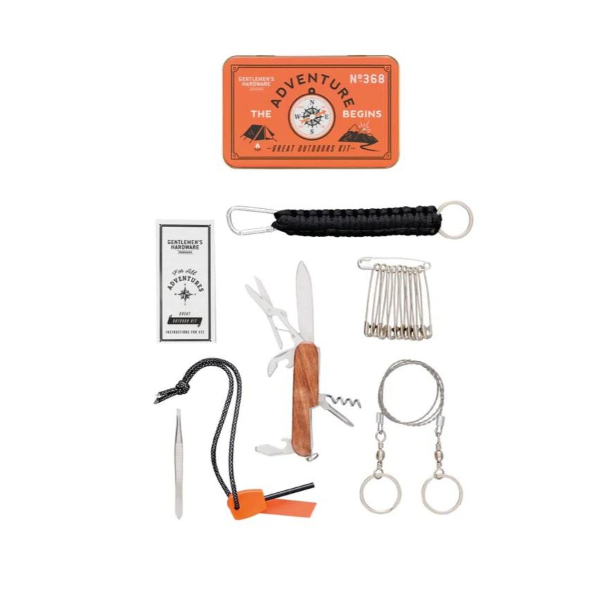 Be prepared for anything with the Great Outdoors Kit from Gentlemen’s Hardware—your ultimate survival sidekick. Compact, rugged, and thoughtfully packed, this kit has the essentials you need for off-grid exploration or unexpected moments on the trail.
