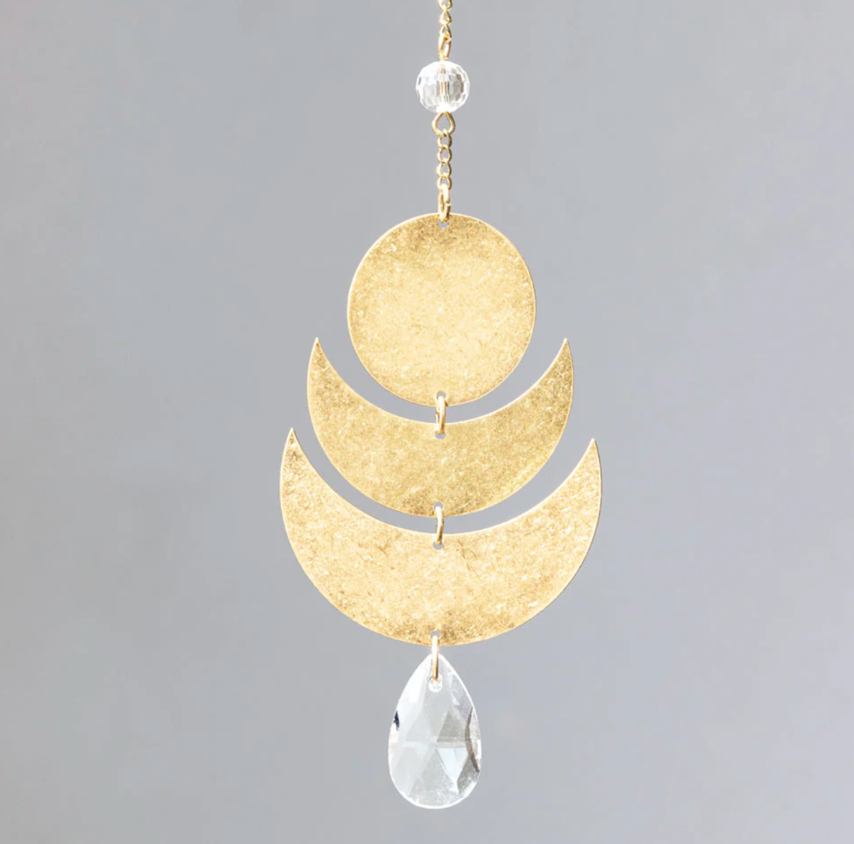 - Materials: Brass with gold plating, crystal, suction cup with a metal hook and a chain extension for hanging.