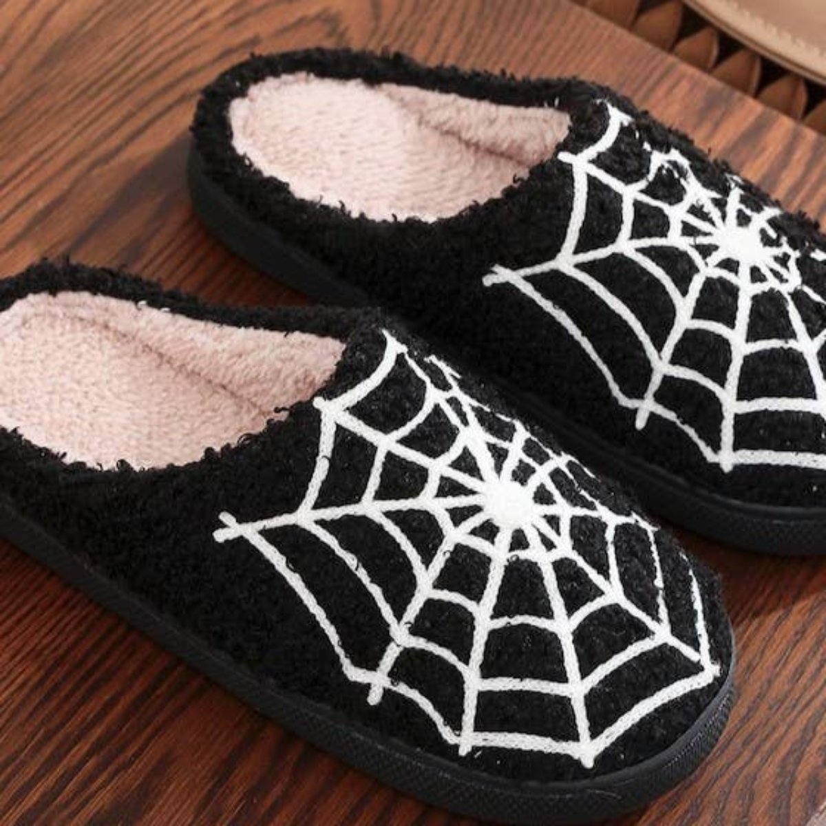 Crafted with soft, plush material and finished with durable rubber soles, they’re ideal for both indoor chilling and quick porch haunting. The bold spider web design adds a festive flair, making them the perfect accessory for movie nights, costume parties, or just sipping cider in style.
