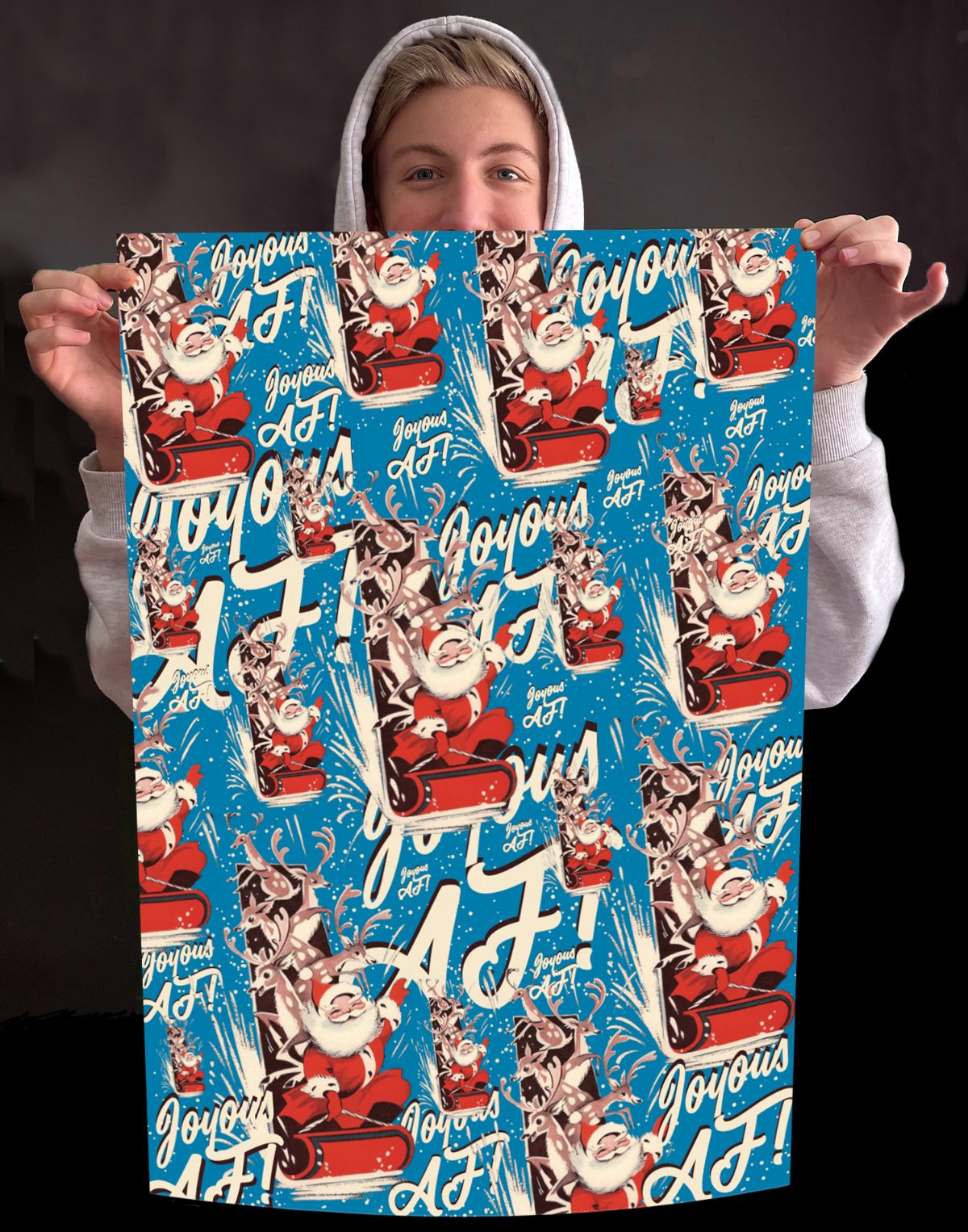 Wrap your gifts in full holiday swagger with our JOYOUS AF SANTA Giftwrap. Bursting with brilliant color and seasonal sass, this high-quality matte wrapping paper brings bold, cheeky cheer to every present under the tree.
