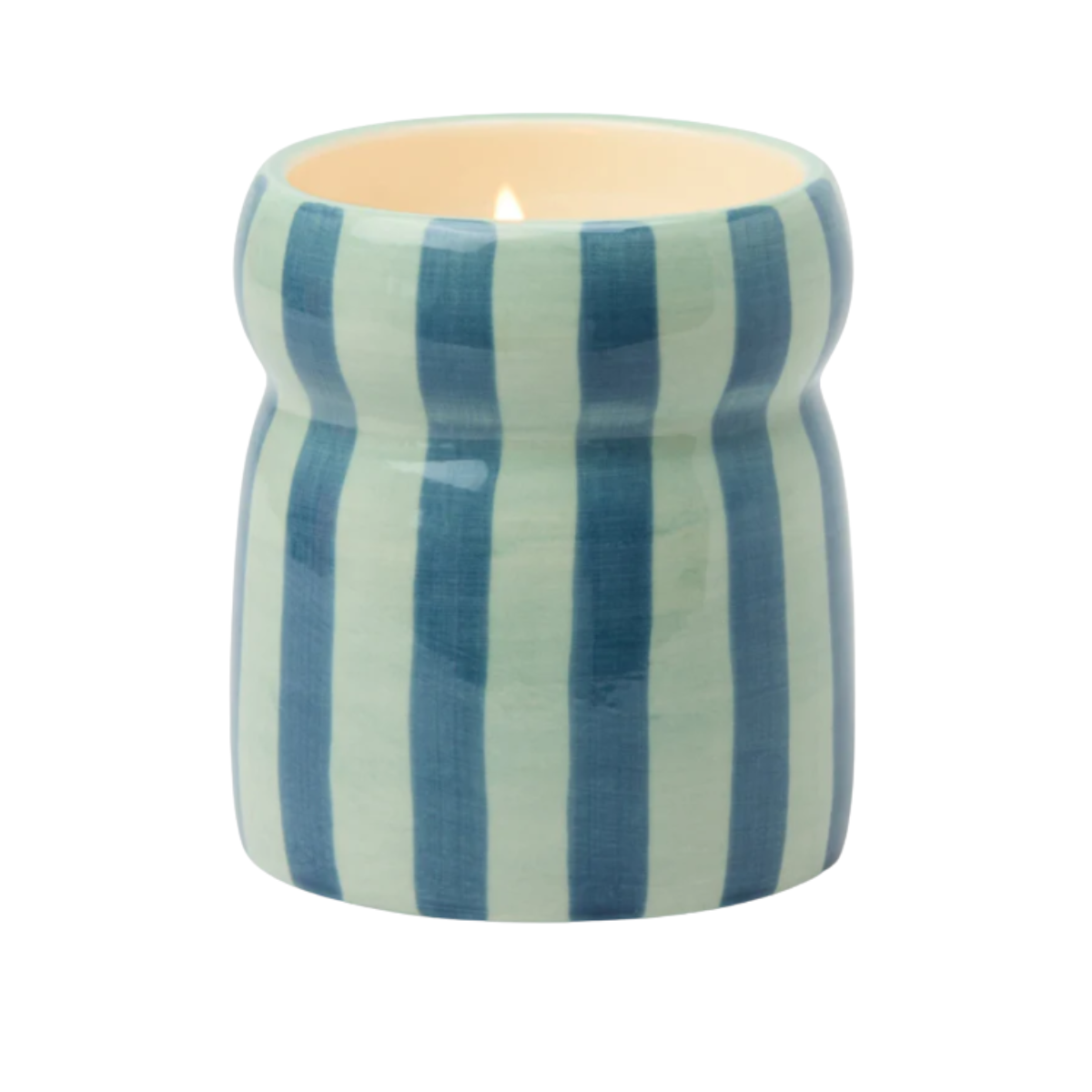 Cabana Blue & Navy Hand-Painted Ceramic Candle – Warm Cider (6.5oz)