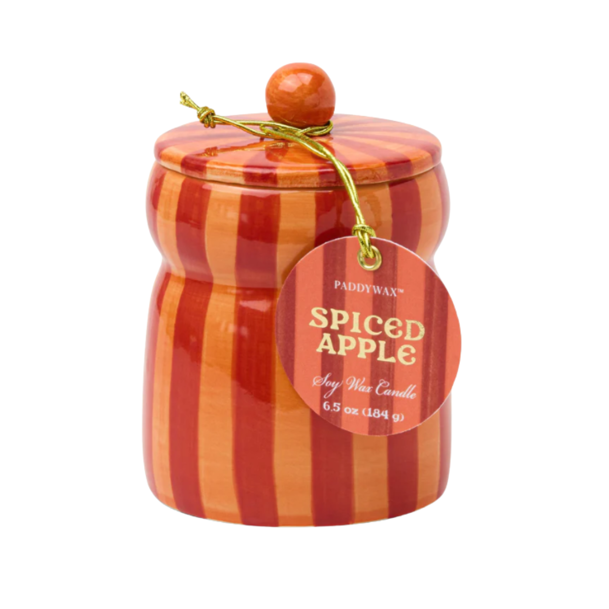Cabana Red & Coral Hand-Painted Ceramic Candle – Spiced Apple (6.5oz)