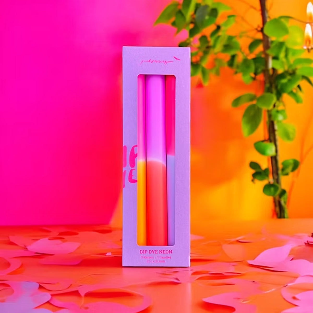 Set of 3 Retrotinted Neon Taper Candles: A bold and colorful collection to brighten any space with a playful neon glow.
