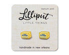 Designed for all-day comfort, these novelty earrings feature medical-grade pure titanium posts, making them completely nickel-free and hypoallergenic—safe for sensitive ears and suitable for kids and adults alike. The vibrant butter design is UV-printed on clear acrylic and sealed to be fade-proof and 100% waterproof, so they stay bright and fun wear after wear.
