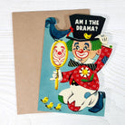 This playful apology card features a vintage-inspired illustration of a wistful clown gazing into a hand-held mirror, paired with the fabulously self-aware question: