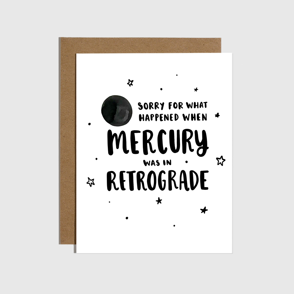Perfect for birthdays, apologies, tough weeks, or just because, this Mercury Retrograde card is a must-have for astrology lovers, zodiac fans, and anyone who blames the planets (just a little).