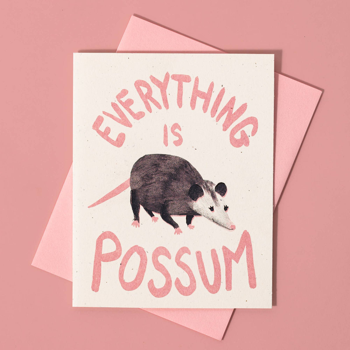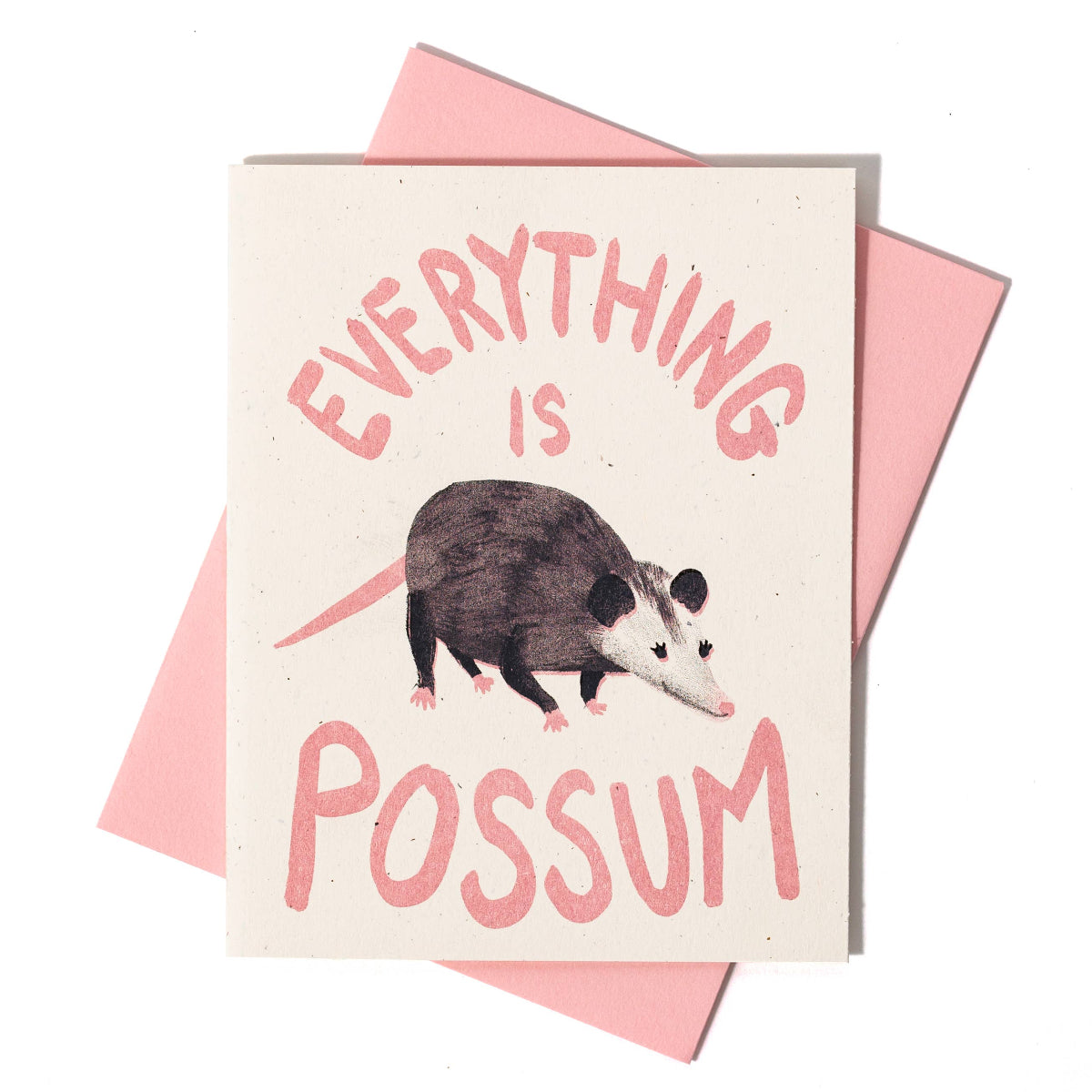 Everything is awesome… especially when everything is possum! This charming design is perfect for animal lovers, pun enthusiasts, and Tegan & Sara fans alike. Featuring a bold black and light mauve print, it’s a lighthearted way to spread joy for birthdays, just-because moments, or any occasion worth celebrating.