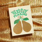 Celebrate a perfect match with this sweet and sophisticated design featuring two golden pears—symbolizing love, unity, and a golden future together. The metallic gold and seafoam Risograph print adds a touch of charm and elegance, making it an ideal choice for weddings, anniversaries, or engagement celebrations.