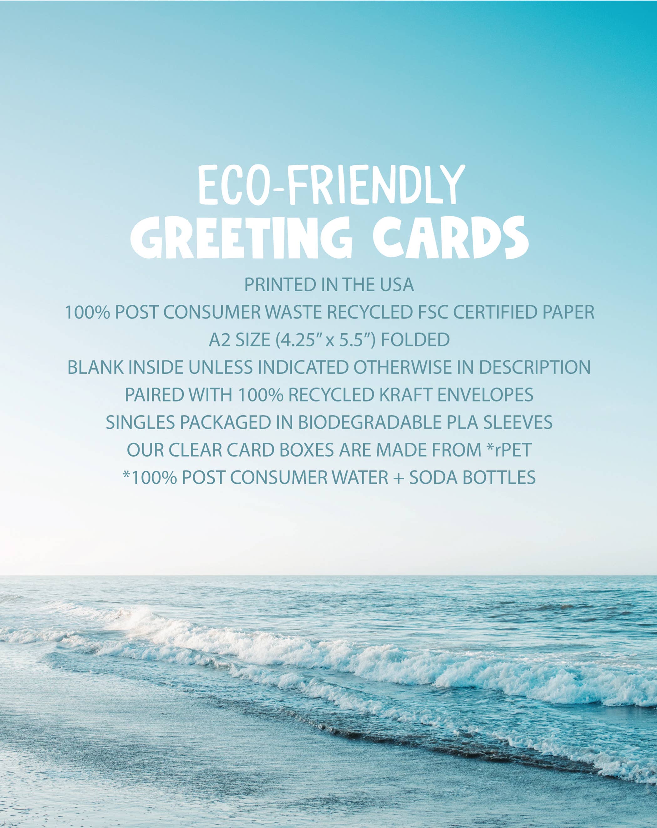 Each card is paired with a 100% recycled brown kraft envelope and carefully packaged in a biodegradable cello sleeve, making it a thoughtful and sustainable choice for eco-conscious gift-givers.