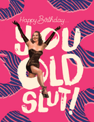 💬 Front Message: “Happy Birthday, You Old Slut!” in a bold, zebra-print design