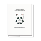 Embrace the chaos with this adorable "Your Life is About to Be Panda-Monium" greeting card! Perfect for celebrating life’s exciting transitions, this 4.25 x 5.5 folded card features two-color letterpress printing for a charming and high-quality finish. With a blank inside, you can personalize your message for any occasion—whether it's a baby shower, graduation, engagement, or new adventure.