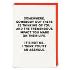 Brighten someone’s day with a laugh! The “Somewhere, Somebody Out There Is Thinking of You” Greeting Card delivers razor-sharp wit and humor at its very best — straight from the award-winning Holy Flaps collection.