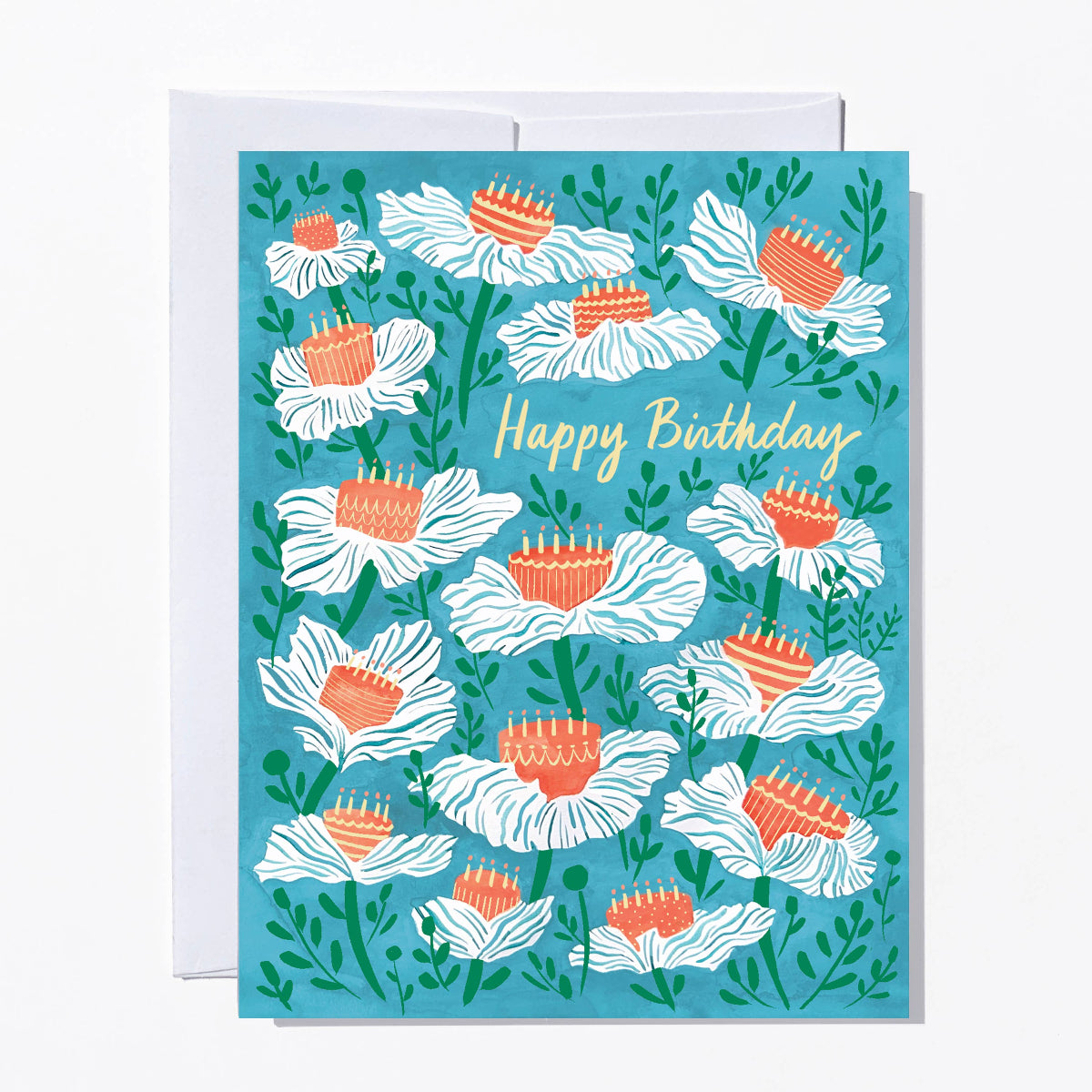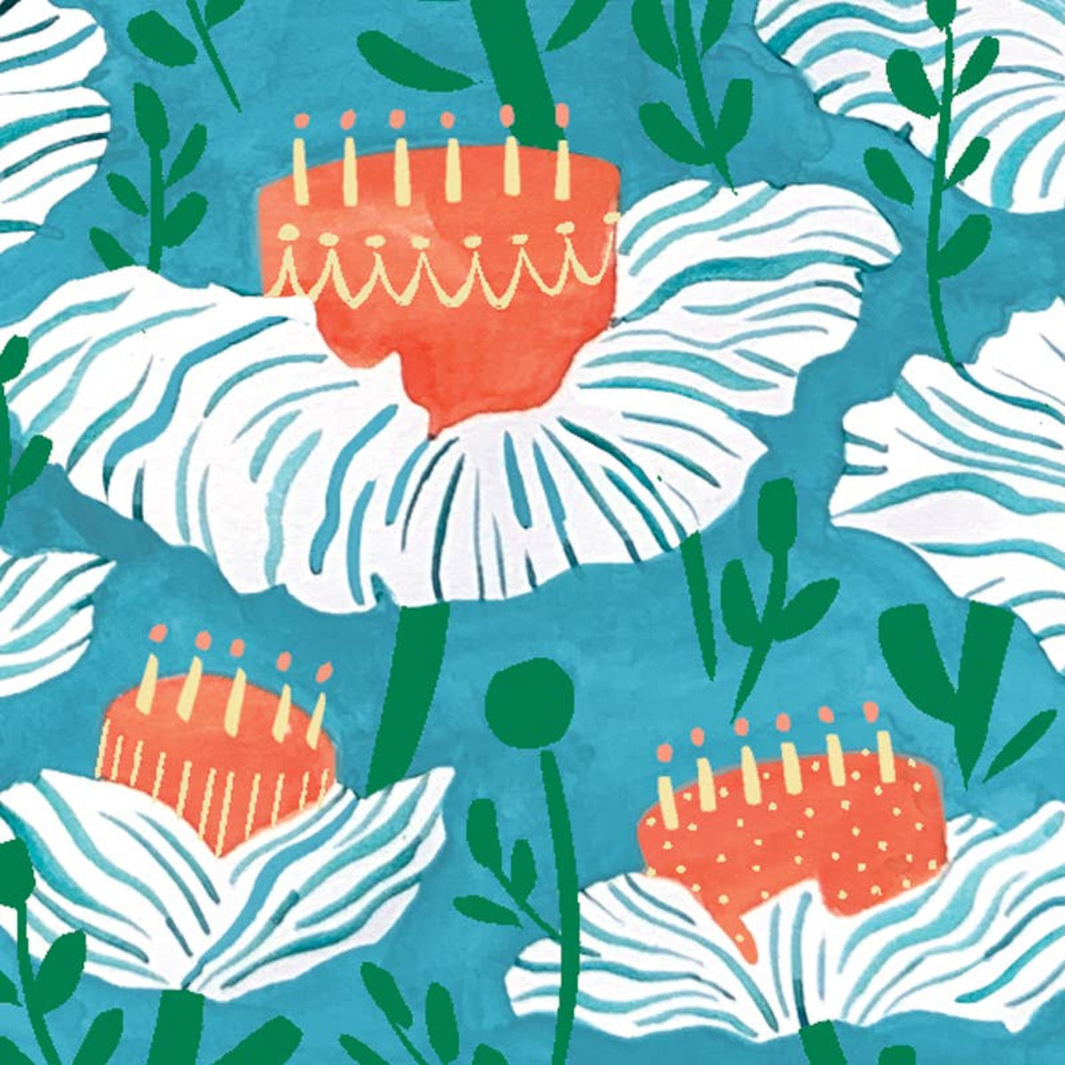 The most delicious birthday flowers? Cake flowers, of course! This sweet and whimsical birthday card features a delightful floral design inspired by the Matilija Poppyânative to Southern Californiaâand reimagined as cake-topped blooms. A unique and joyful way to celebrate someone special, all printed on 100% recycled paper.