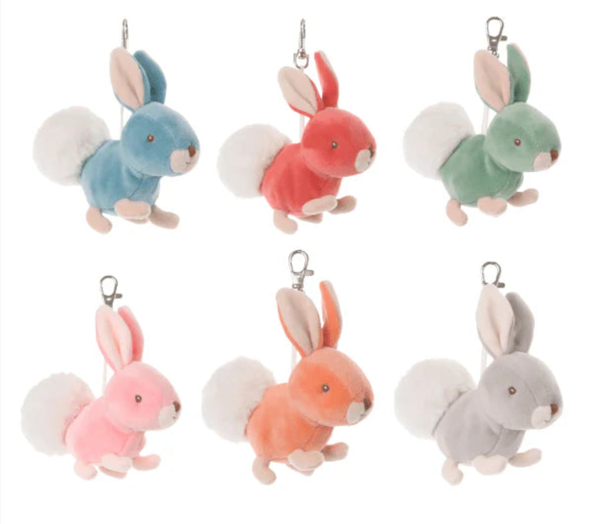 Designed to easily attach to a keychain, backpack, purse, or travel bag, this plush charm adds a playful pop of personality while keeping your favorite bunny close by. With its ultra-soft texture and sweet design, it’s both a cute accessory and a comforting little companion.