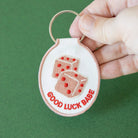 You don’t have to stop the world to just stop feeling lucky—and this embroidered keychain proves it. Featuring the cheeky phrase “good luck babe” alongside a bold dice motif, this design brings a fun, nostalgic vibe to your everyday carry. It’s a pocket-sized piece of art that blends vintage cool with modern flair.