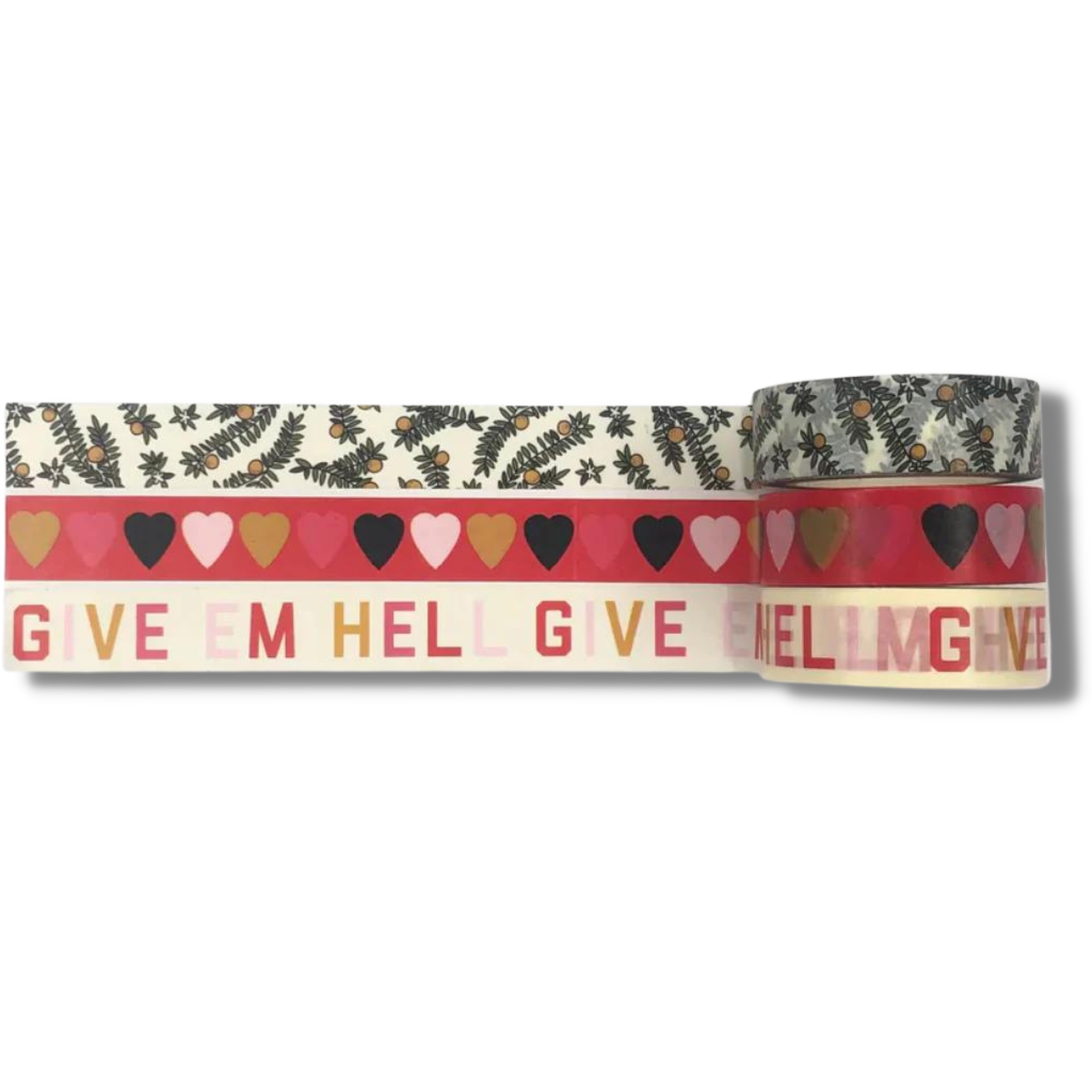 The "Give Em Hell" phrase is printed in a powerful, eye-catching design—ideal for adding some fiery personality to anything you tape up. -