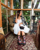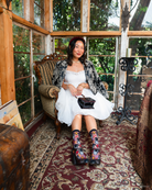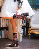 Scattered with red hearts, lightning bolts, and lash motifs, the design brings a playful energy, while the black cuff, heel, and toe add a chic, grounded finish. Perfect for Halloween, gothic fashion lovers, or anyone who wants to stand out, these statement sheer socks transition effortlessly from spooky season to year-round style.