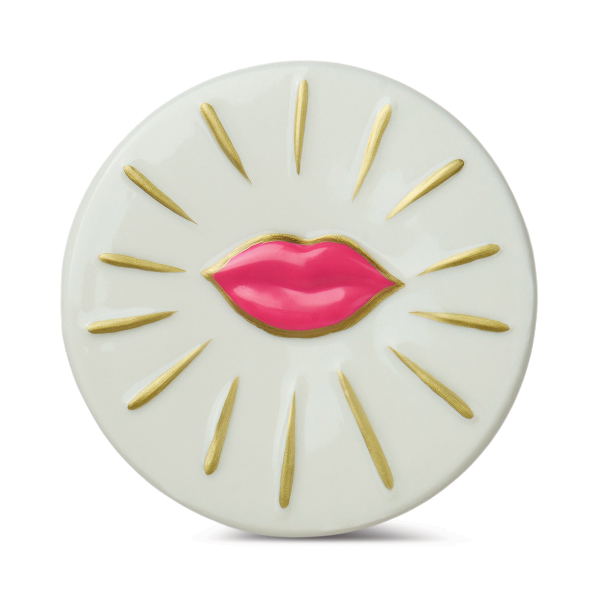 Bold, playful, and full of magic—the Charmed Candle with Lips Lid in Smoked Cherry is a flirty little talisman designed to spark joy, confidence, and a touch of indulgence. Poured into a vibrant hot pink glass vessel, this candle is topped with a hand-painted ceramic lid embossed with lips, framed by radiant gold rays for an extra dose of charm.