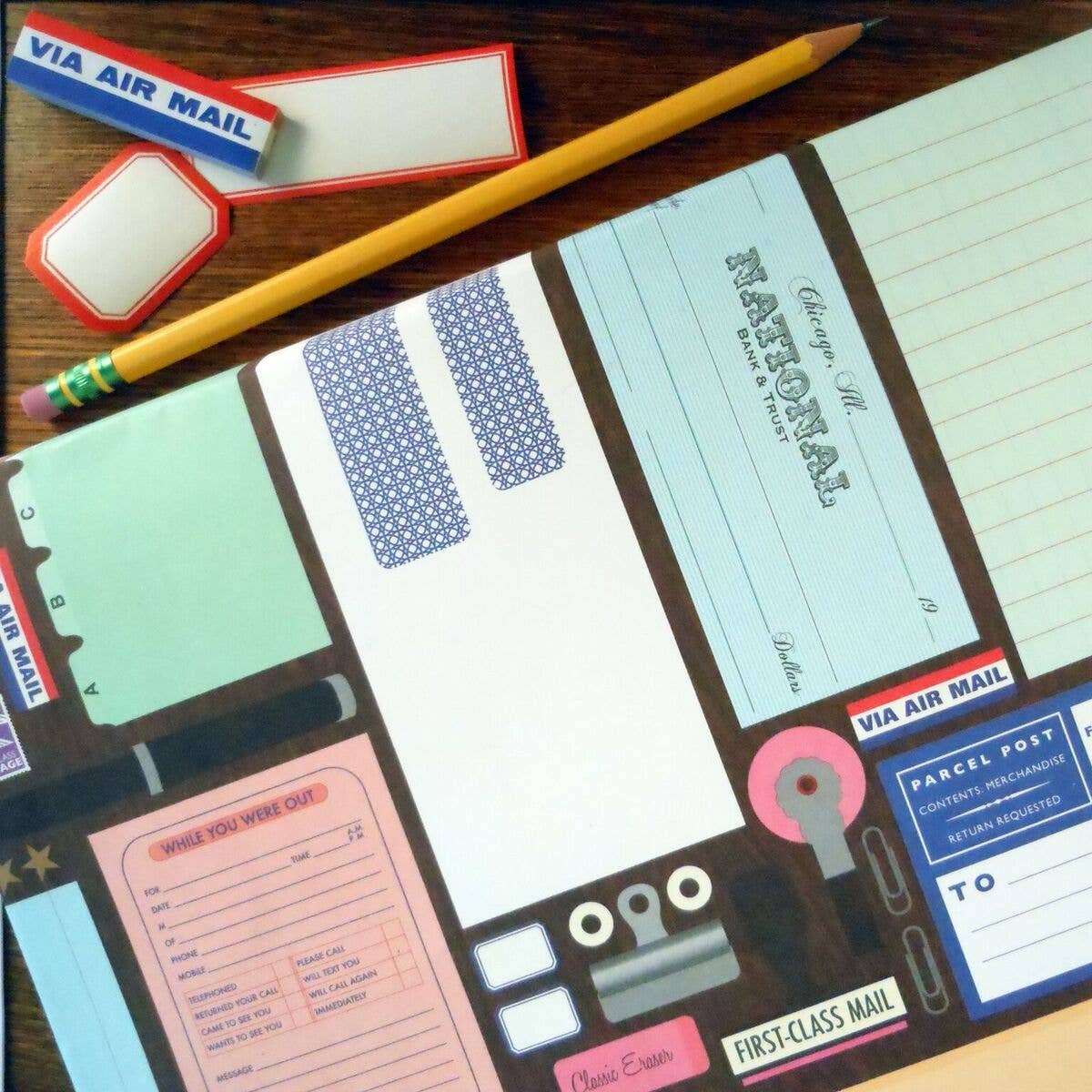 Inspired by years of estate sale finds and a deep affection for vintage ledger paper, legal pads, and office gems—this wrap is a love letter to simpler times and timeless design.