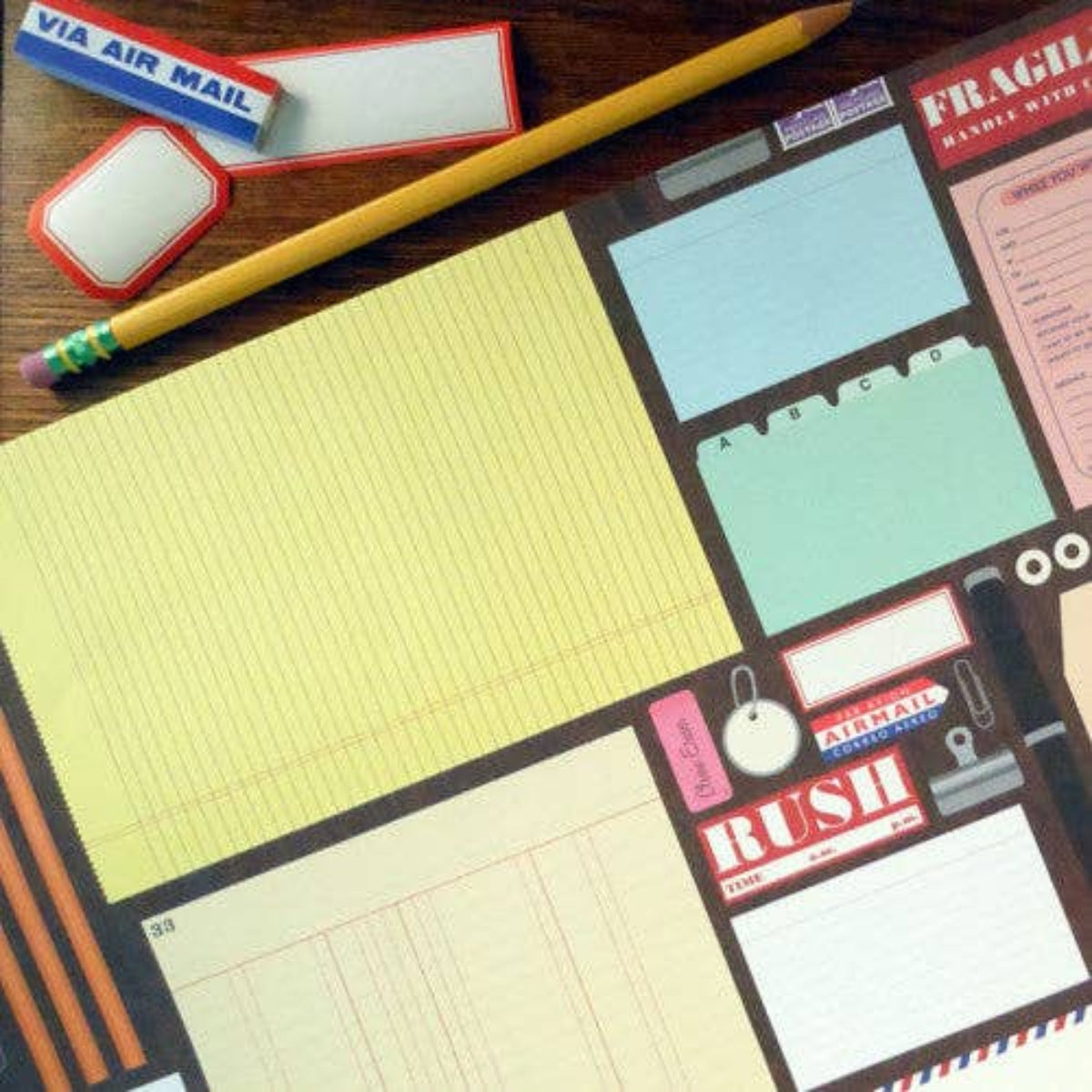 Vintage Office Supplies Gift Wrap: 2 flat sheet 20" x 28" rolled