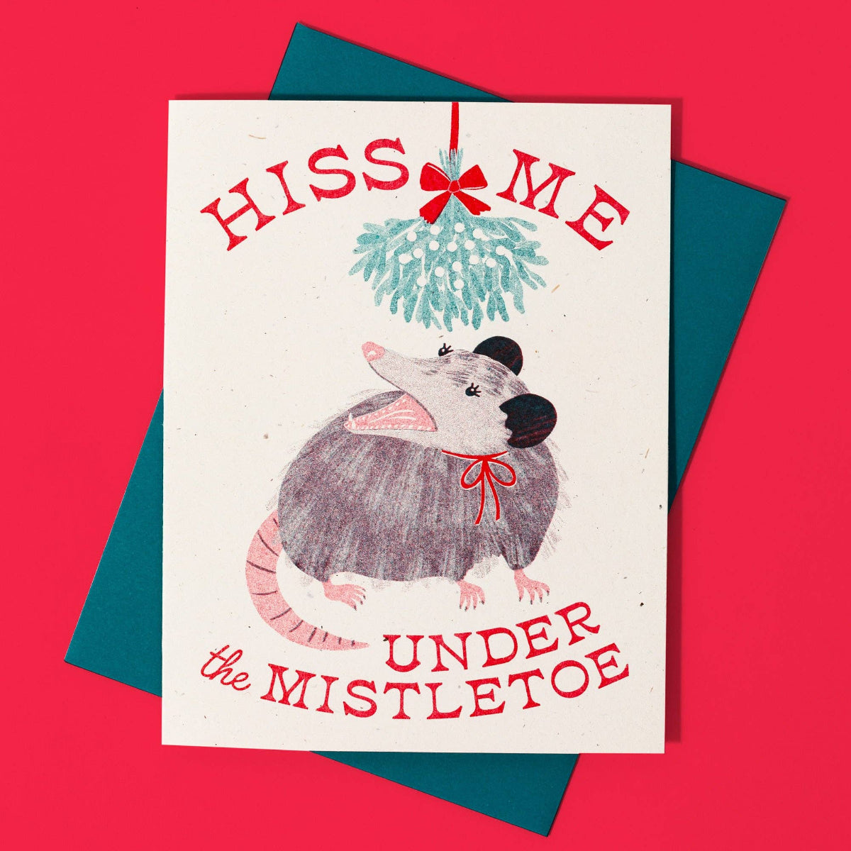 Hiss Me Under the Mistletoe - Risograph Christmas Card