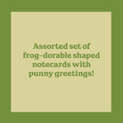 🐸 12 Die-Cut Frog Notecards: 4 unique designs, 3 of each, bursting with quirky charm and punny greetings.
