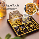 From timeless Old Fashioneds to bold new creations, this sleek, all-in-one kit includes high-end tools and thoughtful details that make every pour memorable—including a custom ice stamp for that extra touch of class.