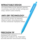 Each pen is crafted with a 0.6mm precision ballpoint tip, offering clean lines and detailed control for everything from journaling and note-taking to doodling, coloring, and creative planning. The retractable click design means no caps to lose and no priming required—just click and start creating whenever inspiration strikes.