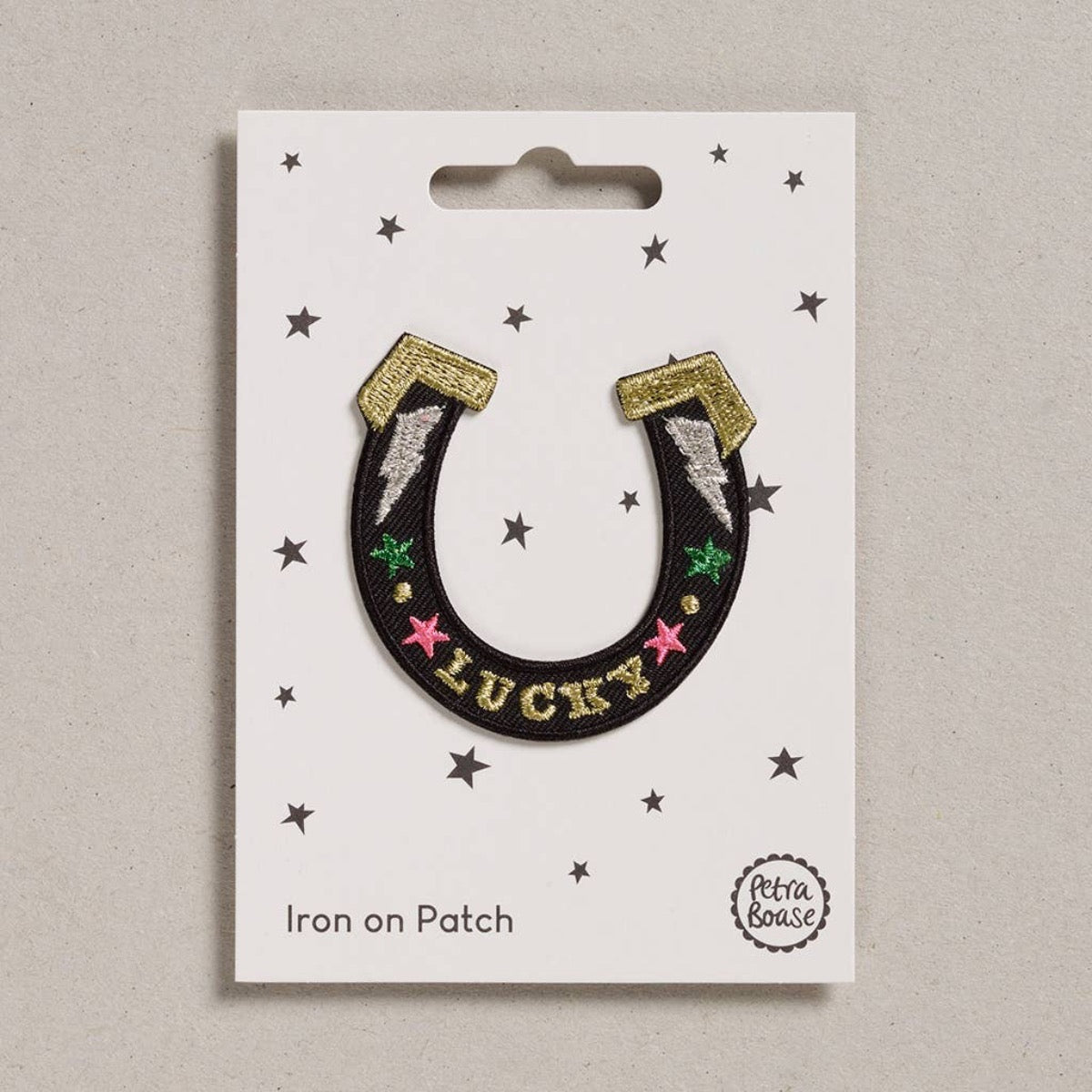 A richly embroidered fabric patch. The patch has an iron-on backing so can be removed from the card and ironed straight on to the fabric. Height: 45mm. Width: 47mm.
