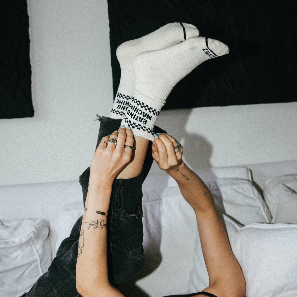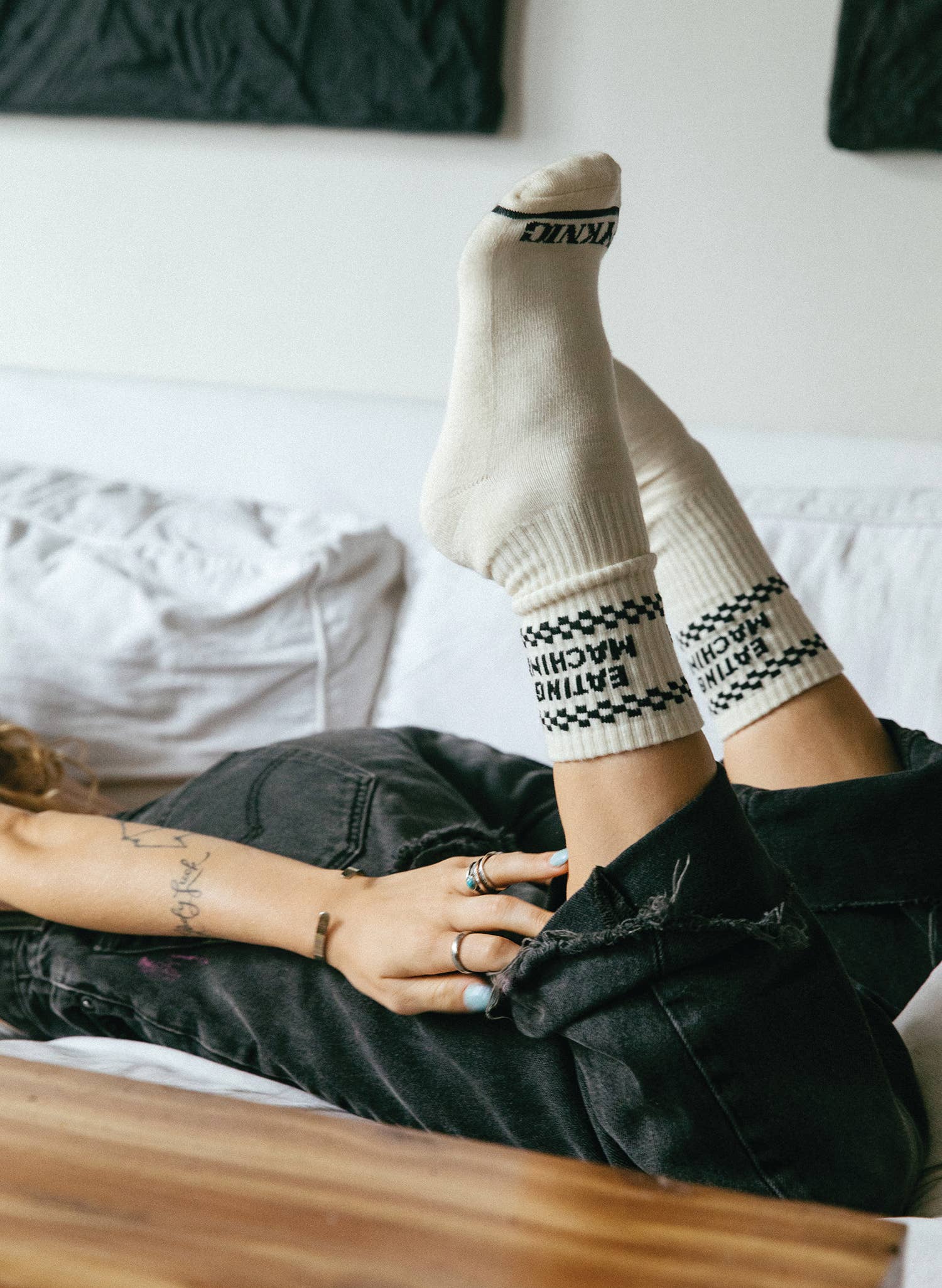 Made from a delightfully comfy blend of cotton, polyester, and elastane these socks are comfy and a statement that you're leaving not even a crumb behind.