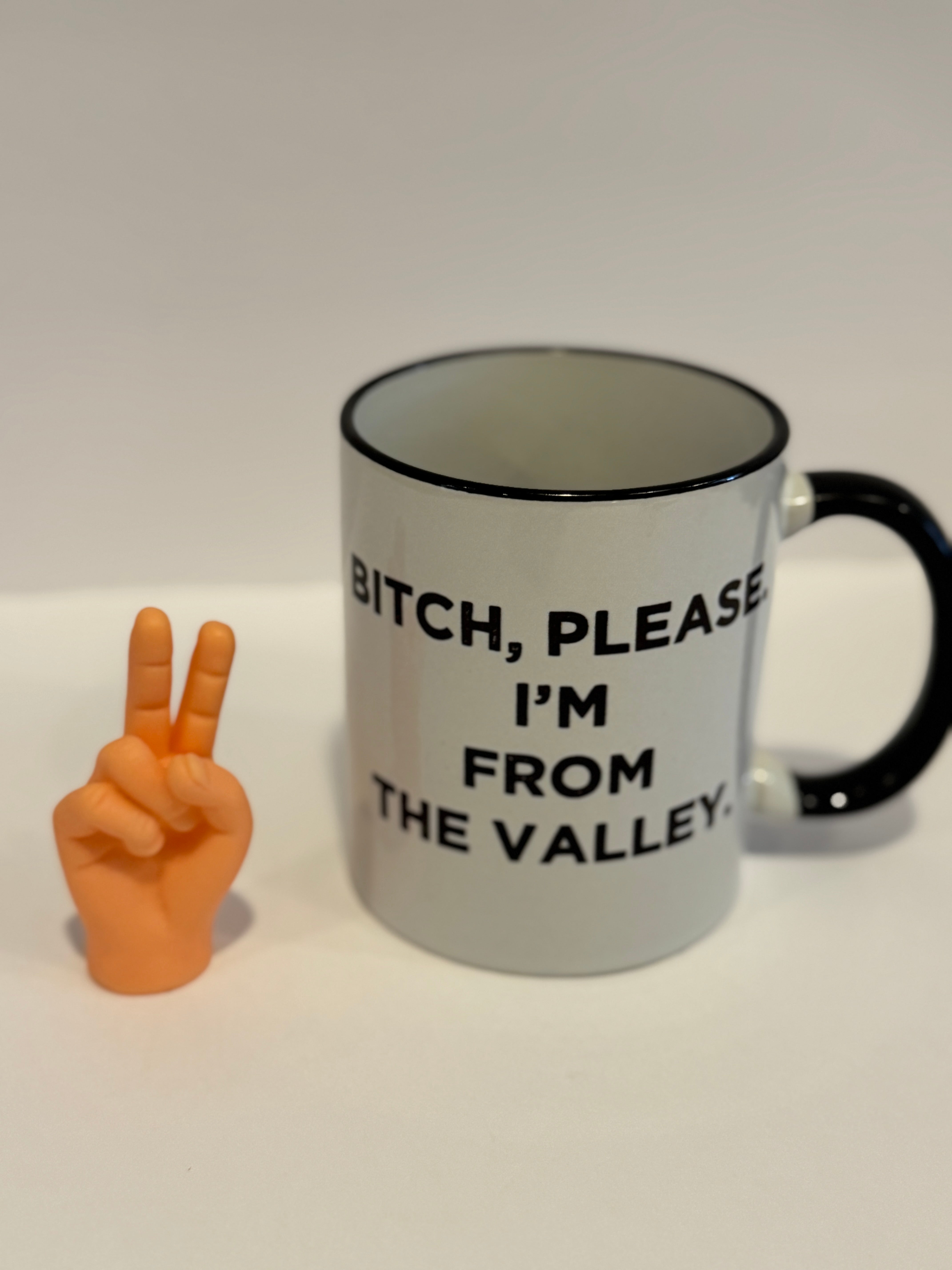 The “Bitch, Please. I’m From the Valley.” mug serves confidence with every sip. Featuring clean, high-contrast typography and a classic black-and-white design, this mug is perfect for coffee, tea, or reminding everyone exactly where your energy comes from.