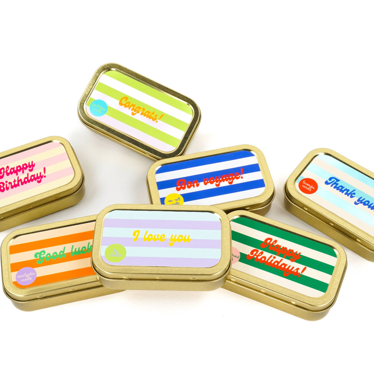 Hand-poured using natural soy wax and a soothing blend of essential and fragrance oils, these candles are housed in a sleek reusable tin container with a lid—compact, travel-friendly, and easy to gift.
